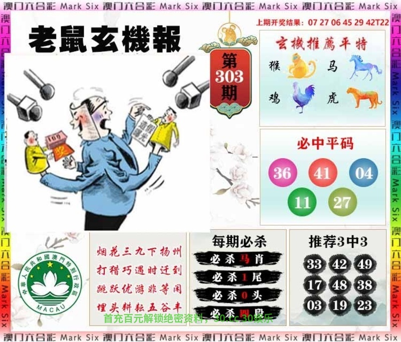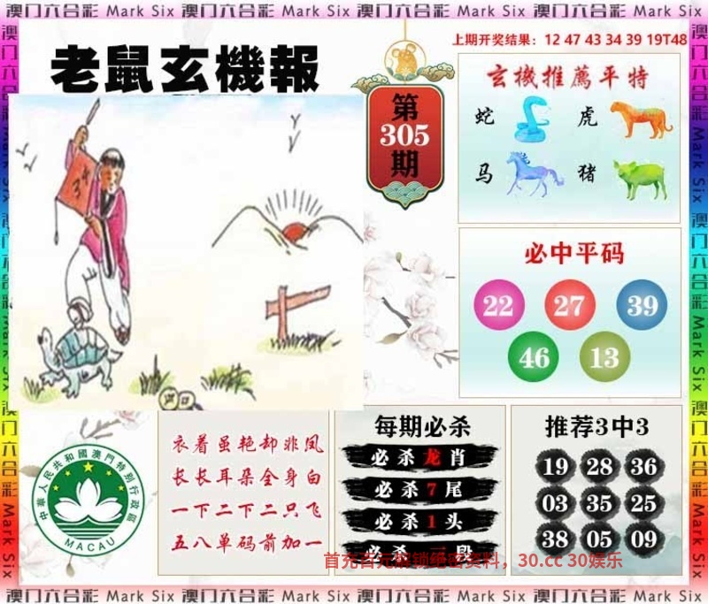 | 305期:天地两肖【地肖+马猴】开:鼠42准 |