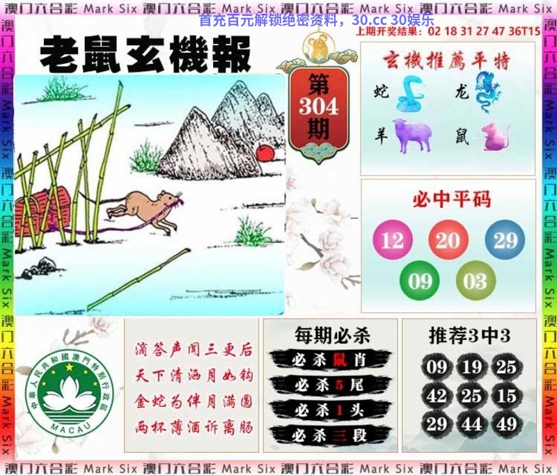 | 304期:🐲内幕家野🐔【家禽】开:马48准 |