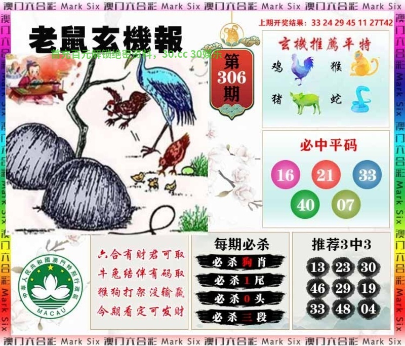| 305期:稳准三季✨【春夏冬】开:鼠42准 |
