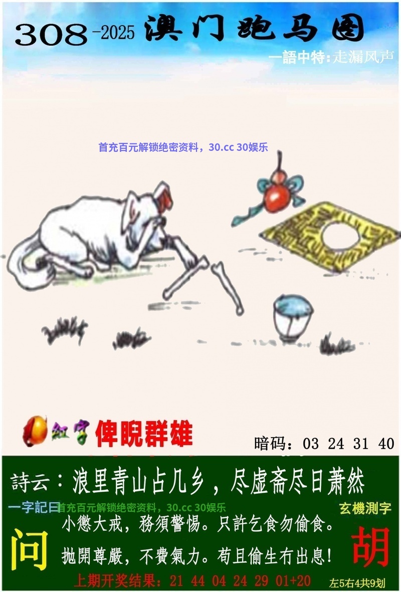 | 307期:🐲内幕家野🐔【家禽】开:狗20准 |